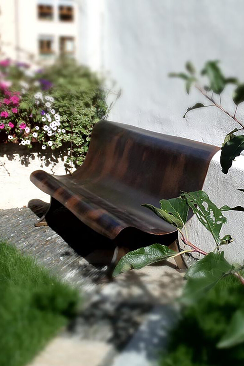 Lampada in ferro finitura patinata.